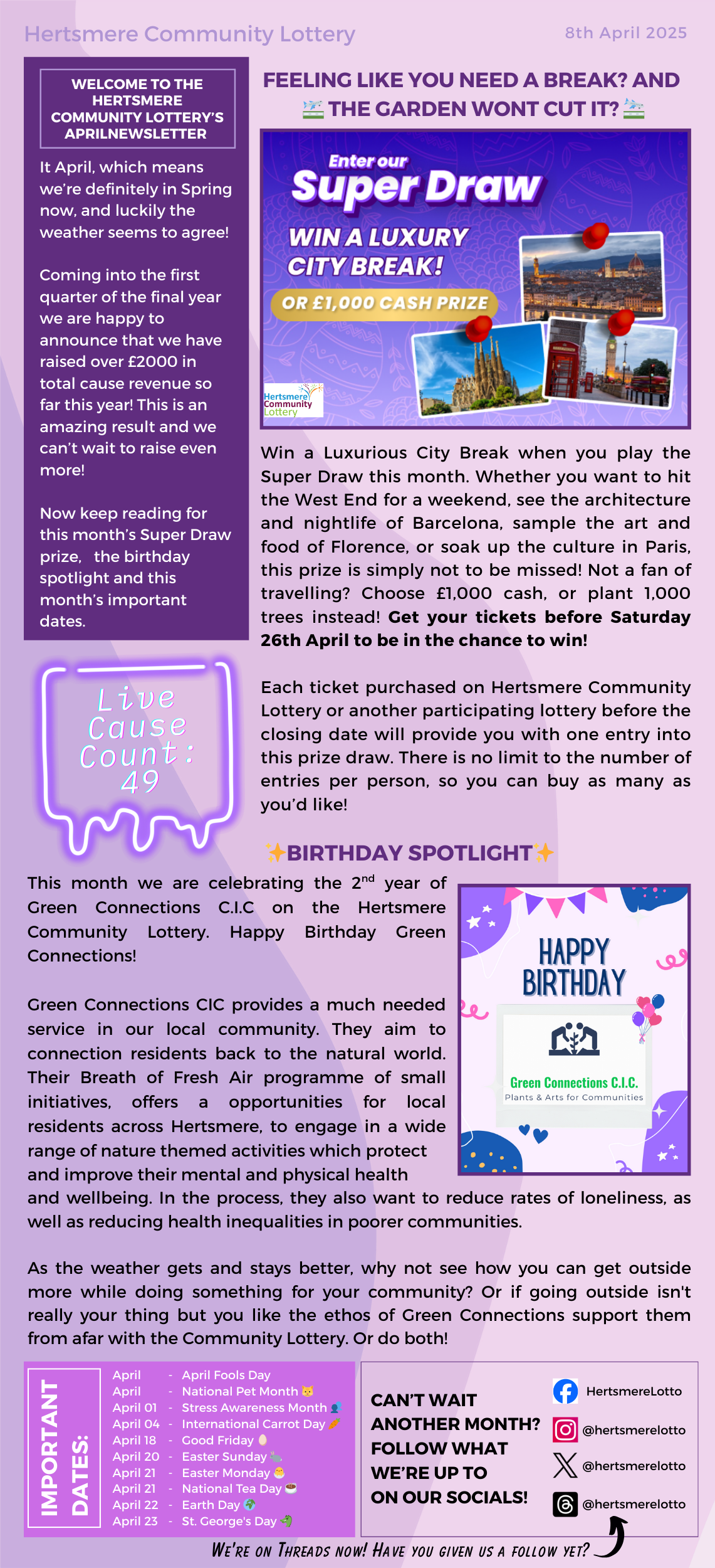 To support Green Connections CIC at the Hertsmere Community Lottery click here: