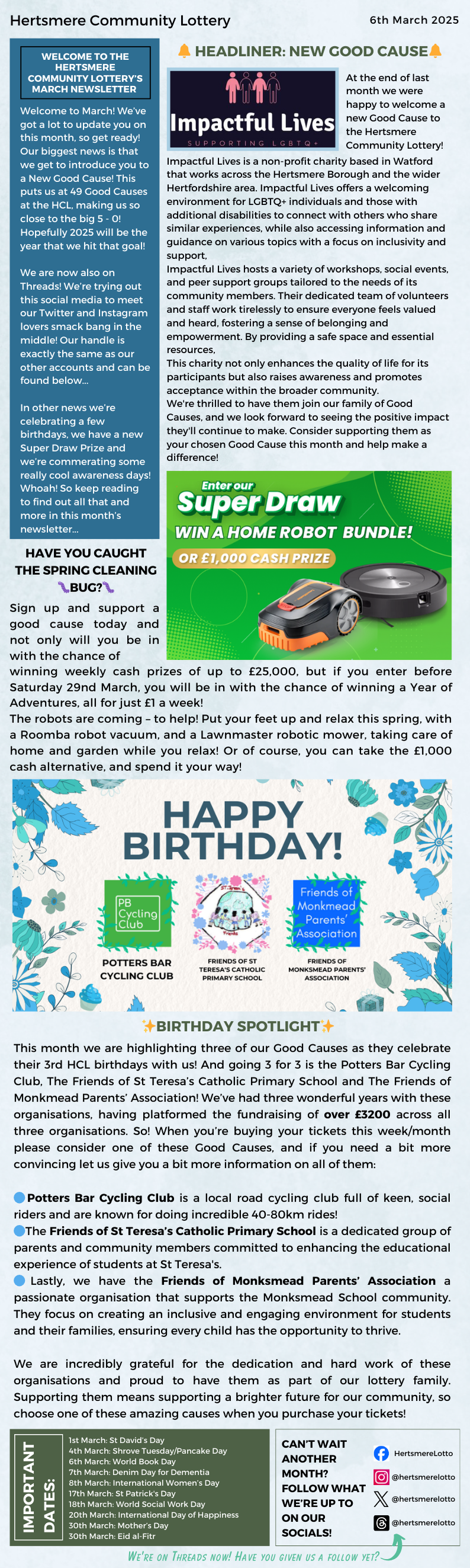 Further Information on each of our birthday Good Causes can be found here:...